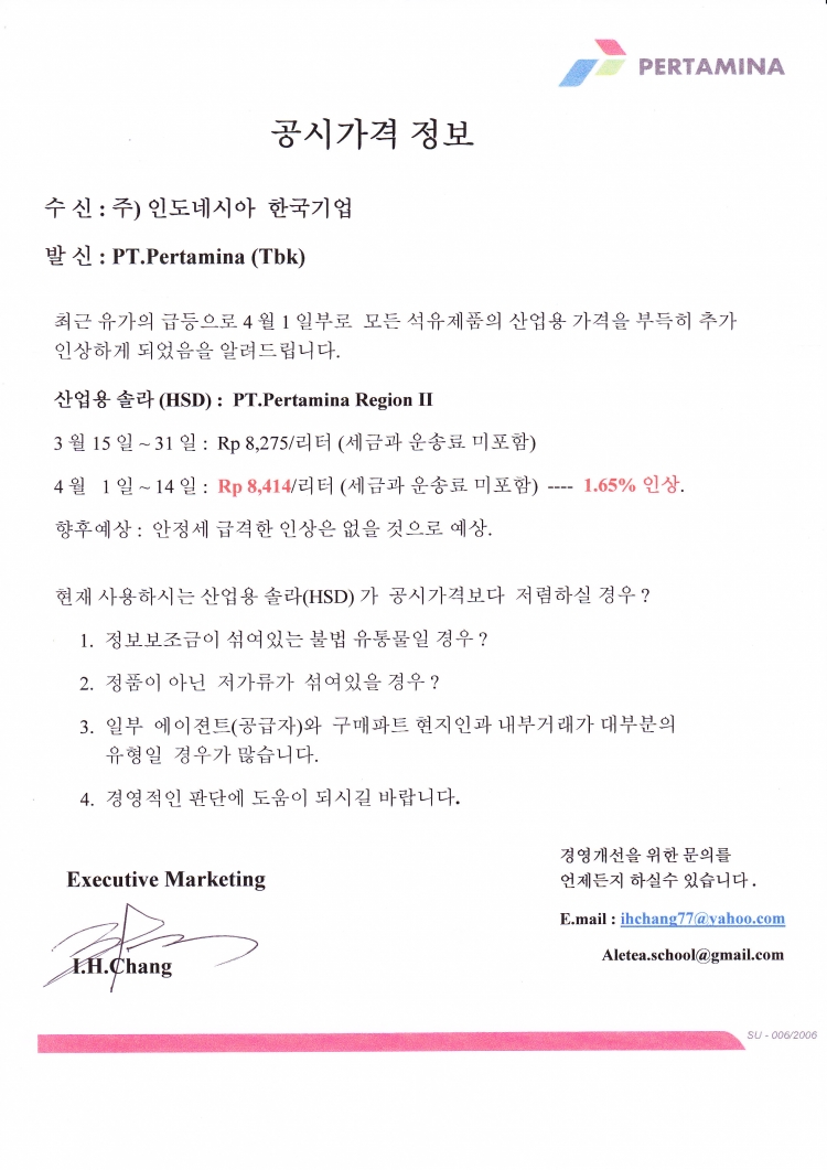 PT.PERTAMINA 안내문 (4월1일~14일 - 공시가격)