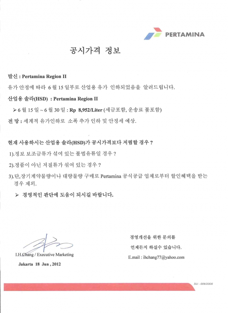 PT.PERTAMINA 안내문 (4월1일~14일 - 공시가격)