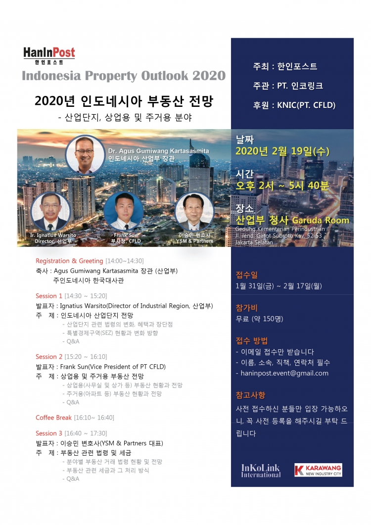 주제 : 2020년 인도네시아 부동산 전망 - 산업단지, 상업용 및 주거용 부동산