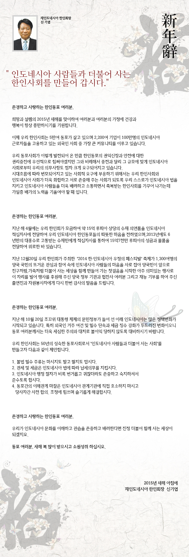 [한인회]재인도네시아 한인회 신기엽 회장님 신년사
