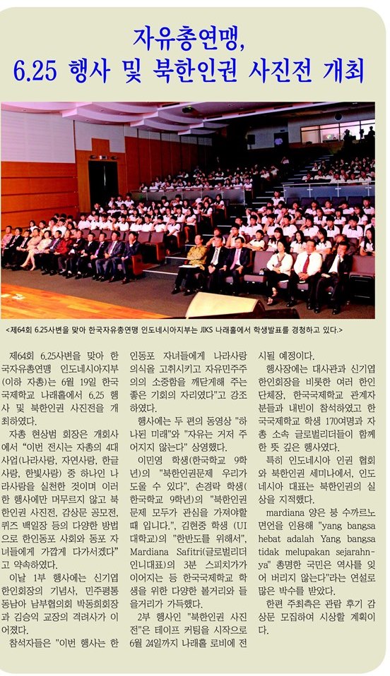 한국자총 인니지부, 6.25 행사 및 북한인권 사진전 개최 - …