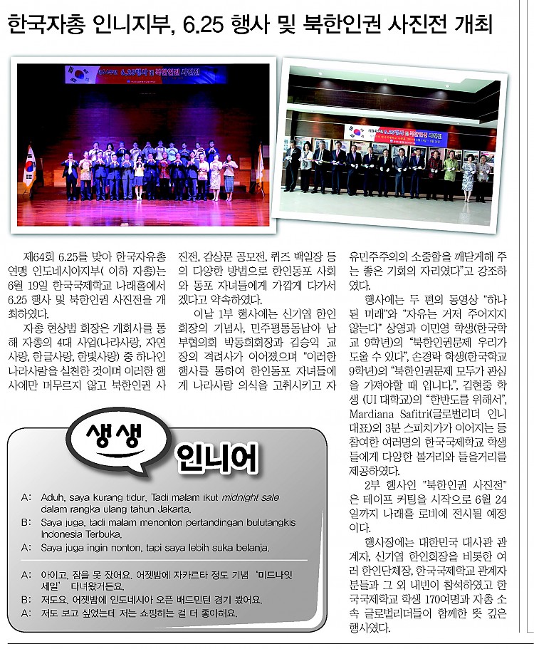 제64주년 6.25 행사 및 북한인권 사진전 - 출처 자카르타경… 댓글1개