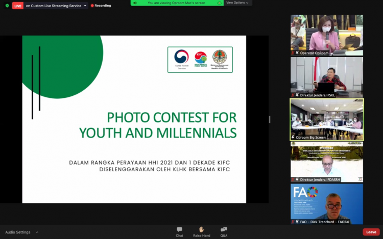 □ 3월 31일 인니 환경산림부 시티 누르바야 장관이 주재하는 세계 산림의 날 기념 웹세미나에서 마흐풋 국제협력국장이 본 공모전의 수상작을 발표하고 작품을 소개했으며, 환경산림부 온라인 회의장에 이를 전시했다.