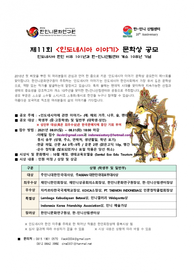 한인단체/기관 > 제 11회 <인도네시아 이야기> 문학상 공모