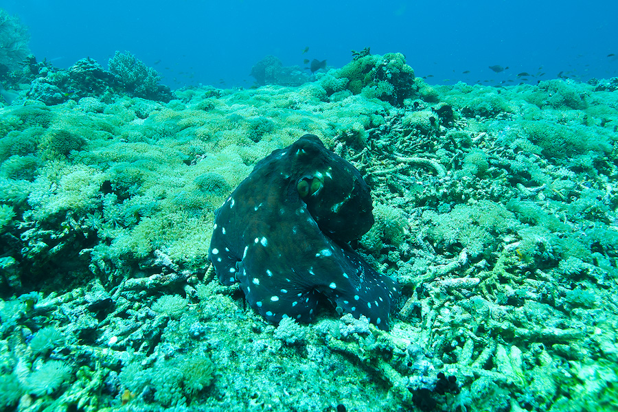 일반적으로 숨어있어서 몸통 전체를 보기 힘든 문어입니다....근데 이날은 밖에 나와계시는군요...