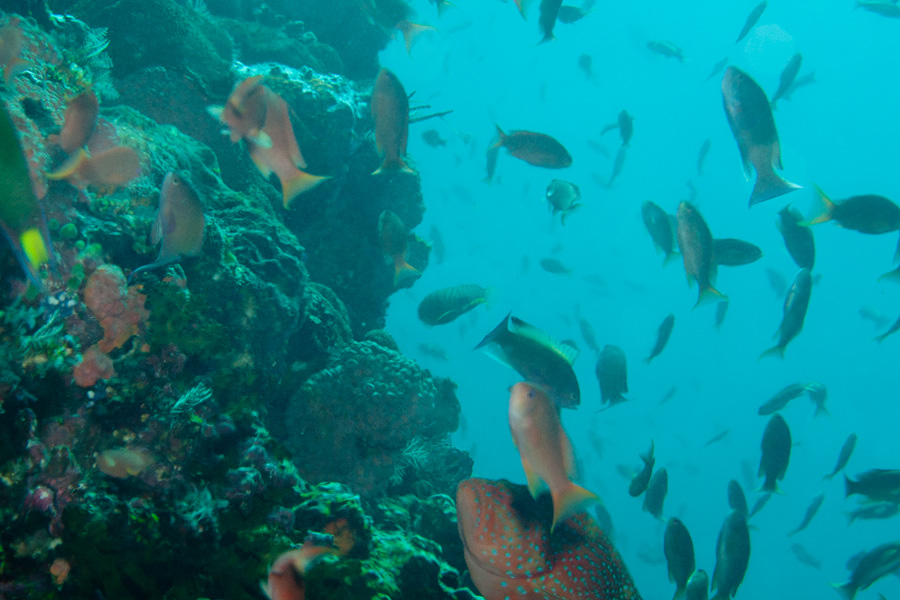 절벽에서 본 물고기들입니다.....대부분 위쪽으로 머리를 향하고 있죠.....하강조류가 있음을 의미합니다.