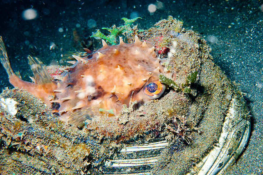 신발에서 휴식중인 가시복어입니다. 흐흐....특이하네요...신발에 복어가 숨어있고, 어제는 종이박스안에서 곰치가 나오기도....