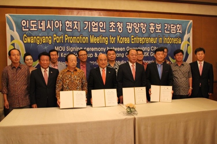 특히, 이날 행사에서 광양시는 인도네시아 재계서열 20위이자 최대 한인기업인 코린도(KORINDO)그룹 및 인도네시아 제1의 벌크선사인 JSK 그룹과 투자양해각서를 체결하였다. 코린도 그룹은 우드펠릿 수송 벌크 선박과 합판을 일본과 중동에 수출(연 36만CBM), 기타 한국-동남아 화물의 광양항 정기선적을 적극 협력하겠다고 약속했다.