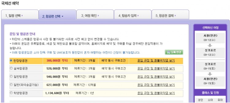 교묘히 나누어 마일리지를 이용하여 업그레이드들 하시려면 비싼 별도의 일반석을 사도록 한 것이지요.