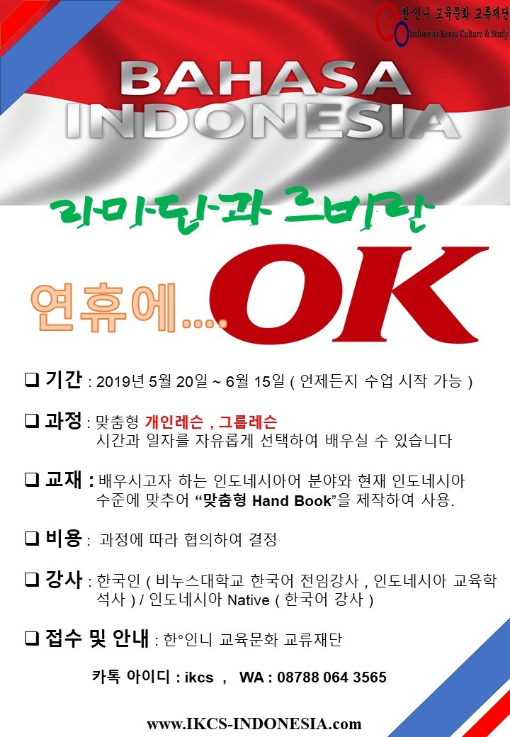 UMN대학 3월 인도네시아어 2개월반 + 저녁반 개설 안내