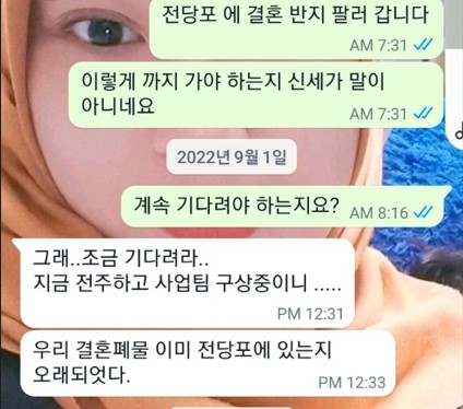 8월 말 이 사람 과 대화 내용 캡처 해서 올립니다