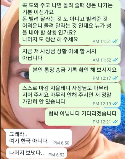금전 적인 여유도 없고 인니에 지인도 없는 상황이라 문자 로 상황이 이러니 30일 까지 부탁 드렸더니