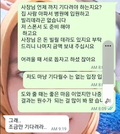 금전 적인 여유도 없고 인니에 지인도 없는 상황이라 문자 로 상황이 이러니 30일 까지 부탁 드렸더니