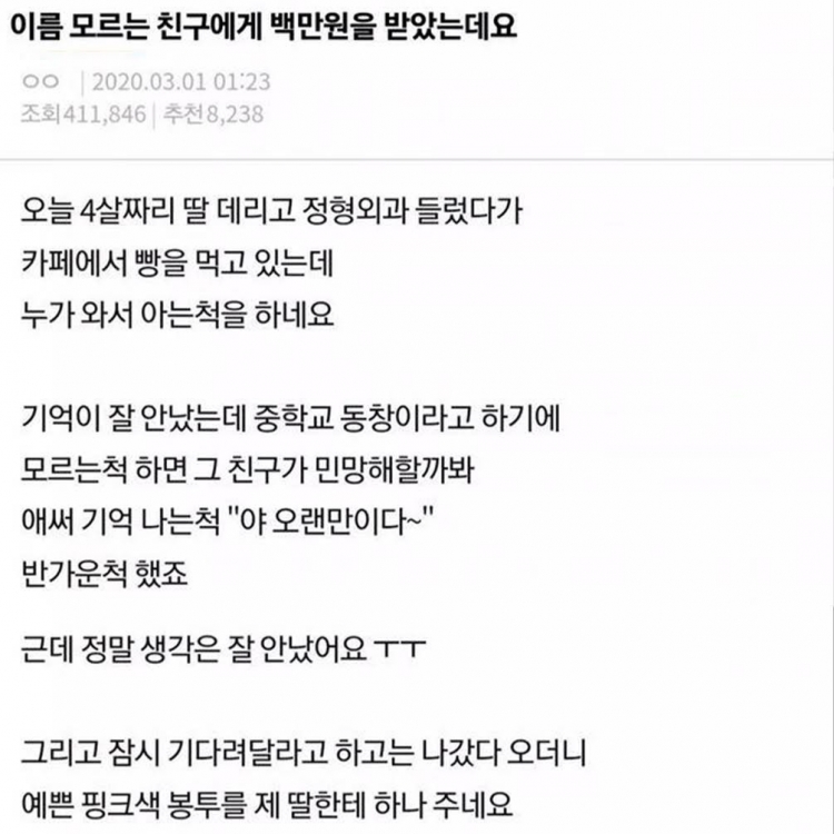 모르는 사람이 친구라며 100만원을 준 이유