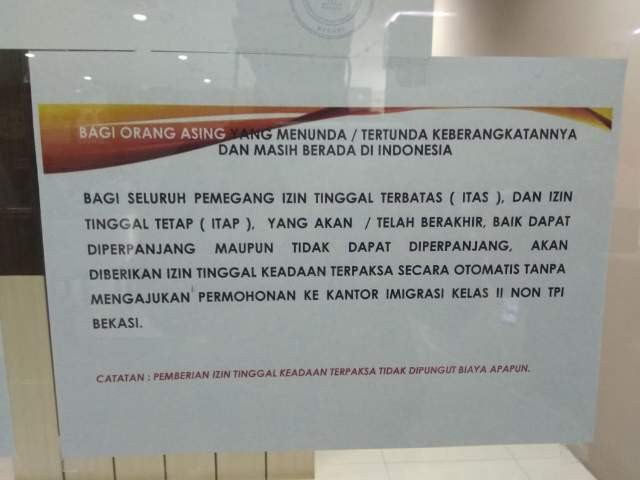 그러므로 이민국의 제한적 업무와 휴뮤로 인하여 단기비자(방문비자,상용비자)소지자들의 단기비자는 연장을 할 필요 없이 자동 연장이 되고 인도네시아 출국 시 유효기간이 넘었어도 벌금을 납부 하지 않는다고 합니다.