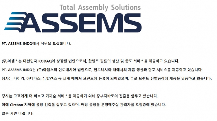 PT SHINWON (주)신원 인니법인 - 니트 인사총무 / 봉제(니트)