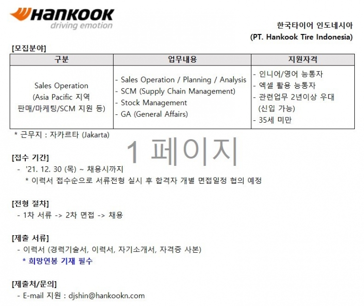 화승 인도네시아 (HWASEUNG INDONESIA) / 총무(1명)/Subcon 공정 생산관리자(1명)/제조라인 관리자(2명) 신규채용