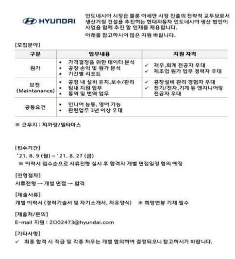 현대자동차 인도네시아 생산법인 / 자동차 제조업