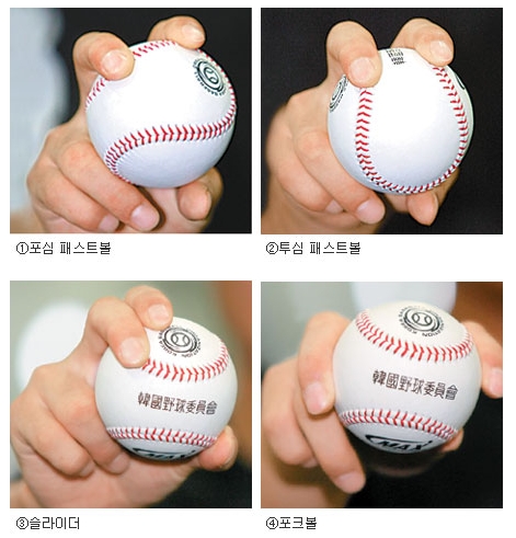 야구공을 아무렇게나 잡고 던져서 잘 던지고 정확히 던지면 얼마나 좋겠습니까..하지만 저희가 그렇지 못하기 때문에 많은 연습과 훈련을 통해서 가까히 갈려고 노력합니다. 그립 잡는법 또한 아시리라 믿지만 연습하실때 제대로 알지 못해서 못하시는 분을 위해 올려 보았으니 연습하실때 참고해서 연습하셨음 합니다. 보통 직구라고 하죠 일반적으로 캐치볼이나 투수들이 빠른공을 던질때 사용하는 그립은 포심입니다....(이하 설명은 블로그주소 클릭 참조)