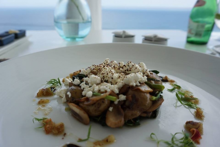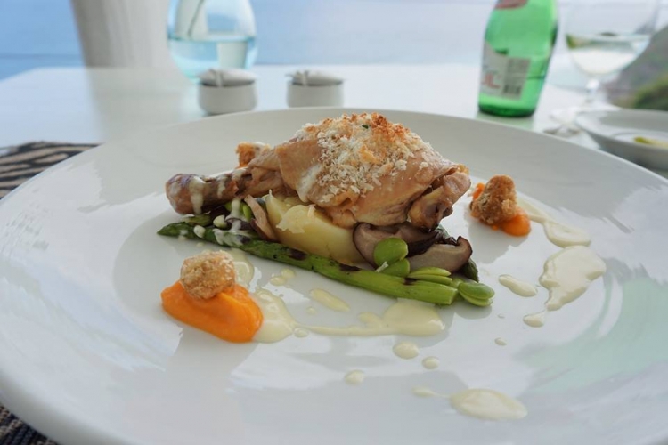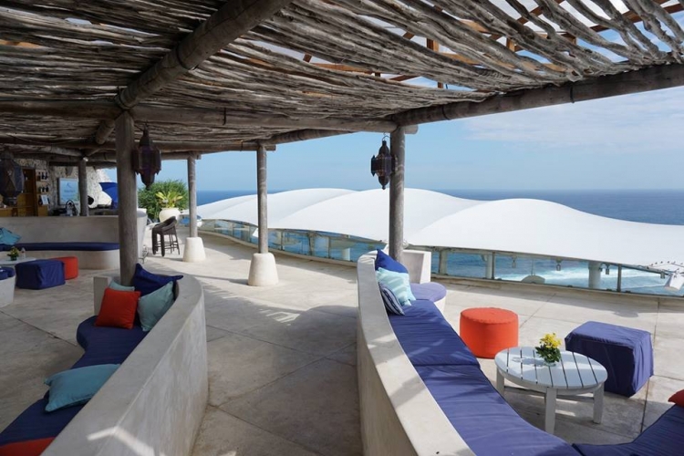 까르마 깐따라 풀빌라내에 있는 식당이며 절벽아래 파도가 절경을 이루고 있으며