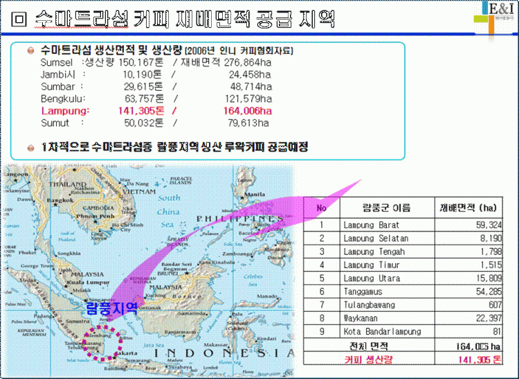 ▶ 인도네시아 커피재배 면적 및 생산량 현황