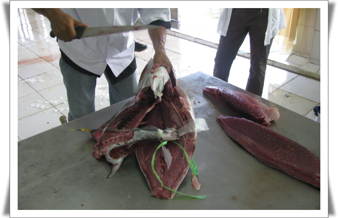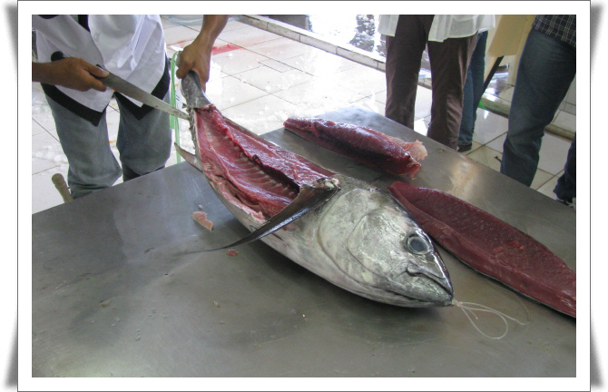동문선배님이 참치사업을 하시는데 오늘은 참치 선별과정과 회를 떠보기로 했습니다.