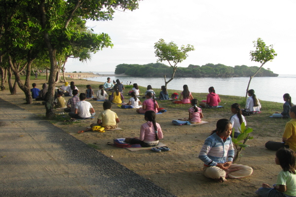 누사두아 비치에서 법륜궁 회원들이 매주 일요일 새벽이면 모여서 명상을 합니다.