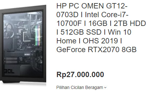 현재 시중 모니터 없이 1000만 루피아 정도에 거래, 2년 반 전에 Rp 13,500,000 주고 구매 이컴퓨터를 사용하다 모트북을 정말 사용못합니다. 스테레스 받아 사용 못해요...정말 빠른 속도로 진행하거든요... HP 모니터 23 es 가격 약 500만 루피아합니다 PC 본체 가격 1200백만 루피아 ... 무선 키보드와 마우스..함께 드립니다 현재 시중에 판매되는 HP 컴퓨터 가격입니다 이것 보다 아래 급이 1500백만 루피아... 감사합니다. 완료되었습니다 |