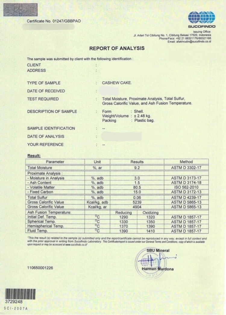 바이오매스 보일러 연료 캐슈넛 쉘케익