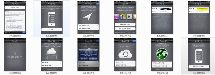 일단은 이용악관부터 나오고 동의를 하면 뭐 위치서비스 아이튠즈 로그인 등등 의 선택이 차례로 주룩 주룩 나오더군요,