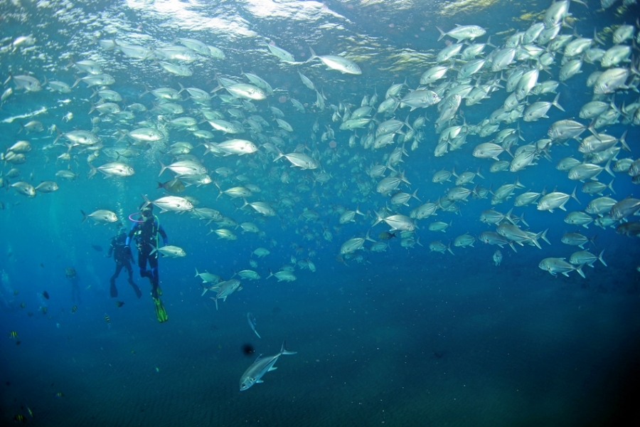 Jak Fish 라는 고기때 입니다 이넘들은 몰려 다니며 사람이 접근을 하면 둘러싸는 재미있는 행동을 하지요
