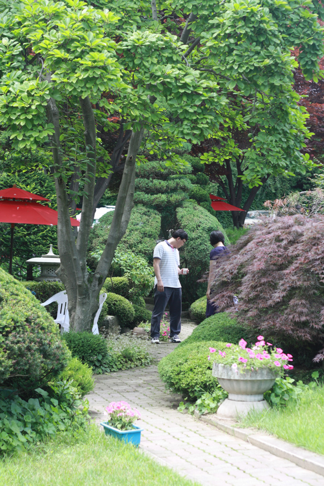 어제 조카 백일 잔치를 했습니다. 정원이 예뻐서 사진 찍으며 돌아보는데 정원사도 있다고 함다.