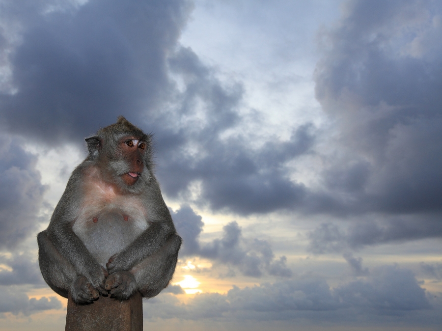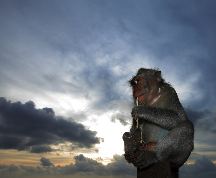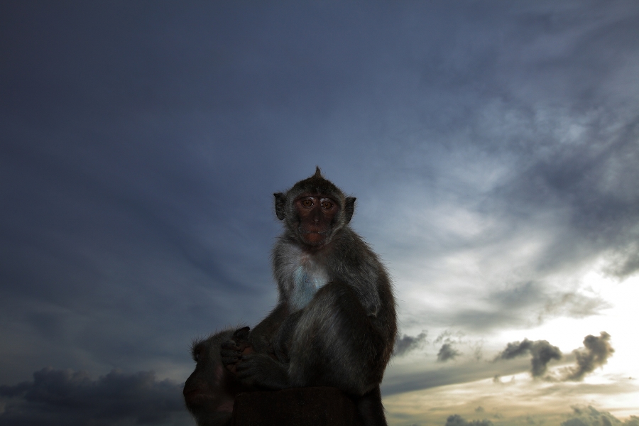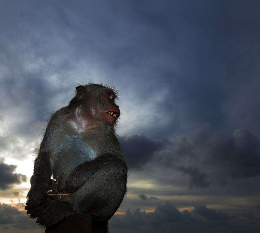 원숭이들 석양을 배경으로 이렇게 멋지게 찍은 사진은 첨봅니다 인정