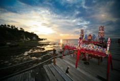 저 목조 다리 끝에서 오직 한 커플을 위한 디너 만찬이 준비됩니다...노을지는 바다를 바라보며 인도네시아 전통 타악기 연주를 들으며...