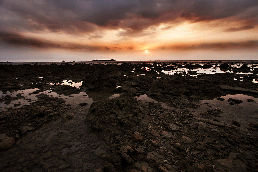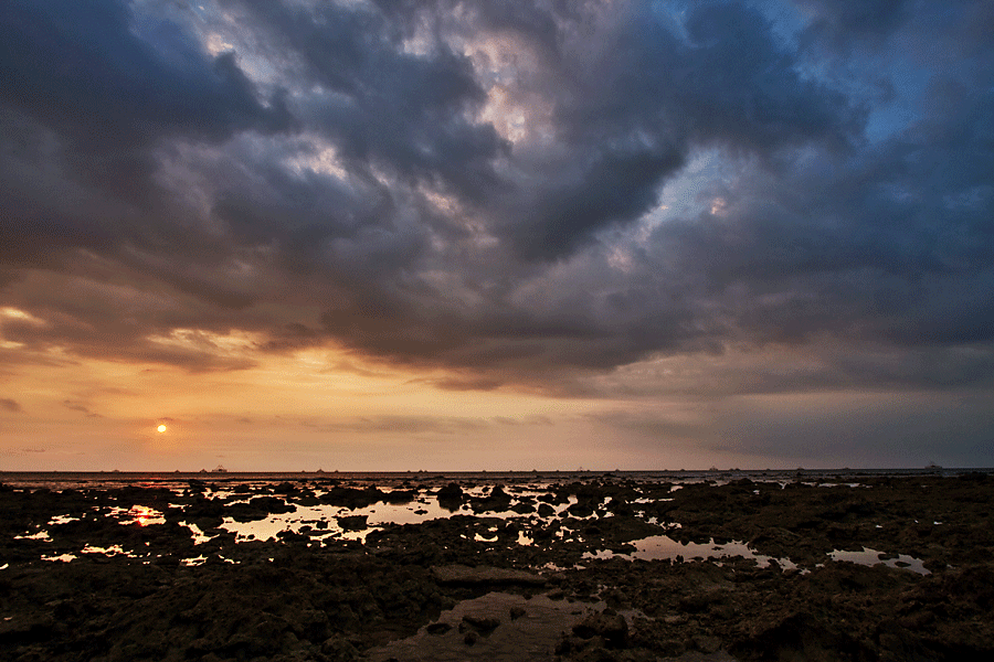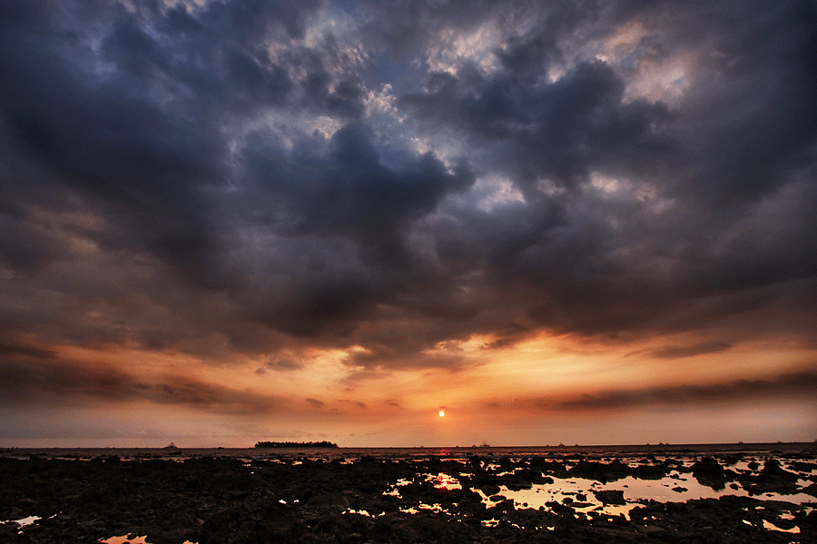 하늘과 땅 사이에 지는 해 ..아주 솔직한 일몰 광경입니다.