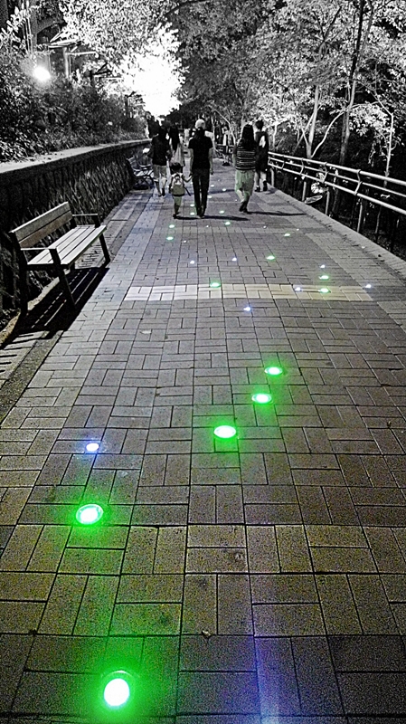 오 ~ 보도블럭 아래에 저렇게 불규칙적으로 조명을 설치 했군요 멋진데요
