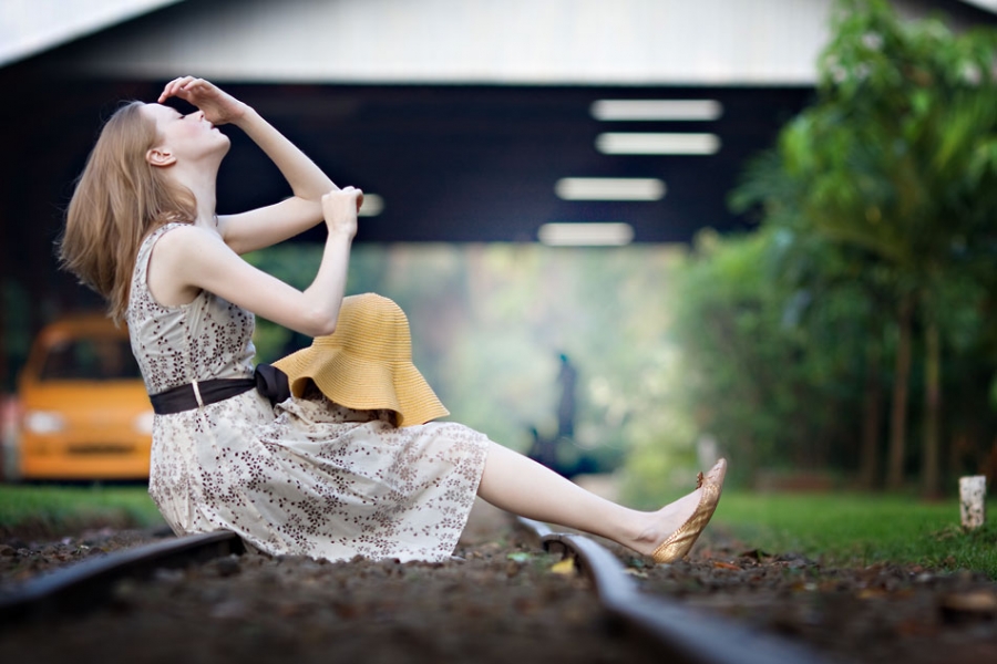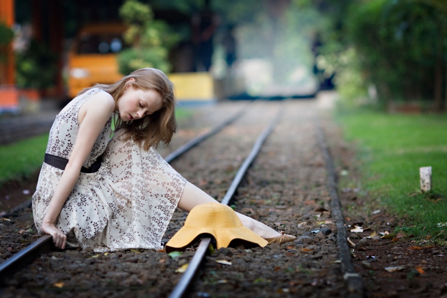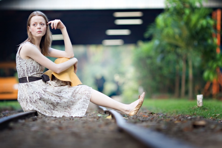 기찻길에서 찍으니 기차 길 라인을 프레임 구성에 중심으로 생각하고 구도를 잡았습니다. 그리고 배경에 노란색 기차와 오랜지색 기둥,그리고 푸른색의