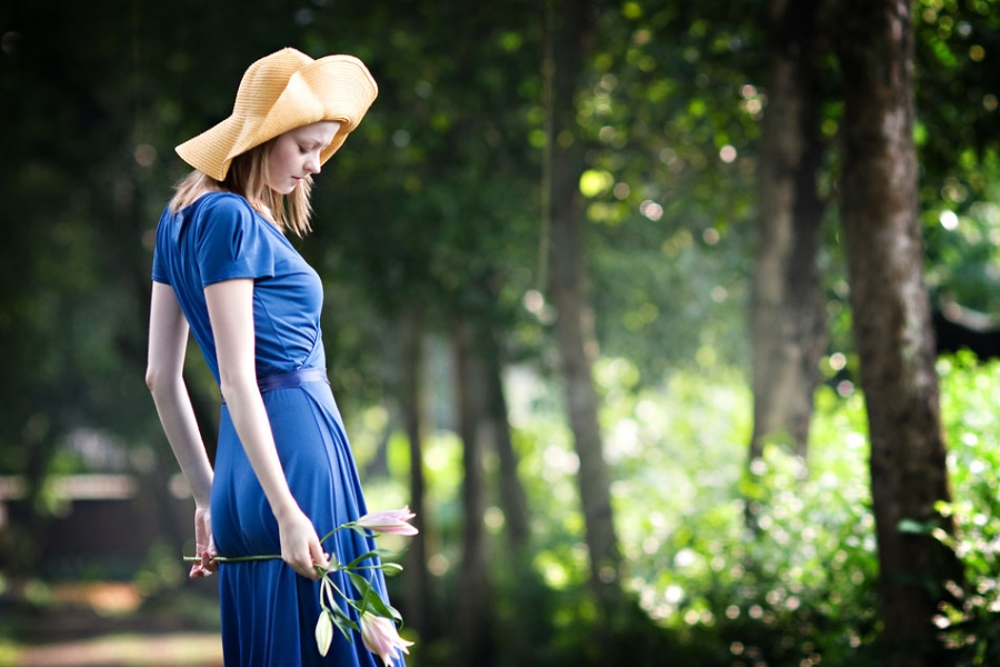 우리조 따만부룽 두번째 모델이였죠. 처음에 파란색 원피스를 보고 사실 좀 걱정했습니다. 초록색 배경에 파란색 옷이 묻히는것이 아닌가...