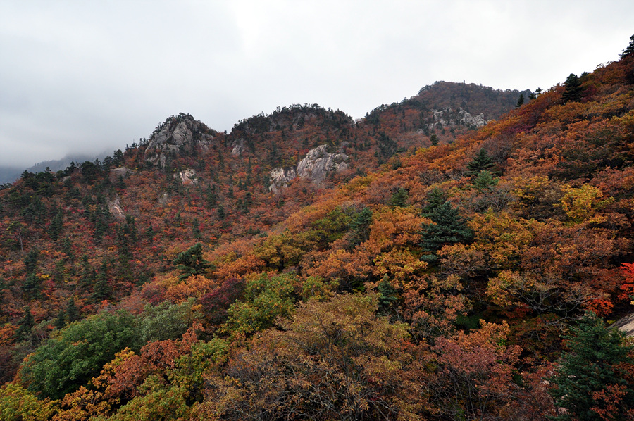단풍이 절정을 이루지 않았으나, 케이블카 정상엔 그래도 알록달록하게 물들어있더군요..