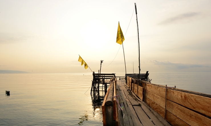 아침엔 황금색,낮엔 비취색으로 빛나는 술라웨시 바다.