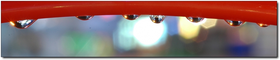 비 온 뒤 비치파라솔 플라스틱 의자 손잡이 용 구멍에 맺힌 빗방울입니다...