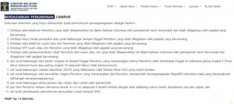 - asli bukti pembayaran permohonan pernyataan untuk menjadi WNI.