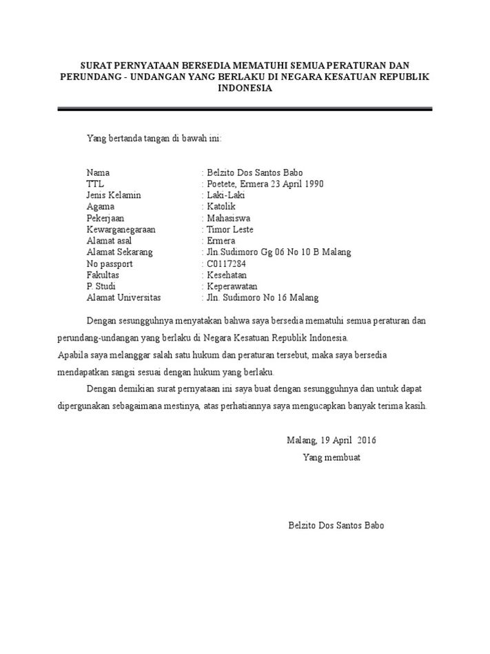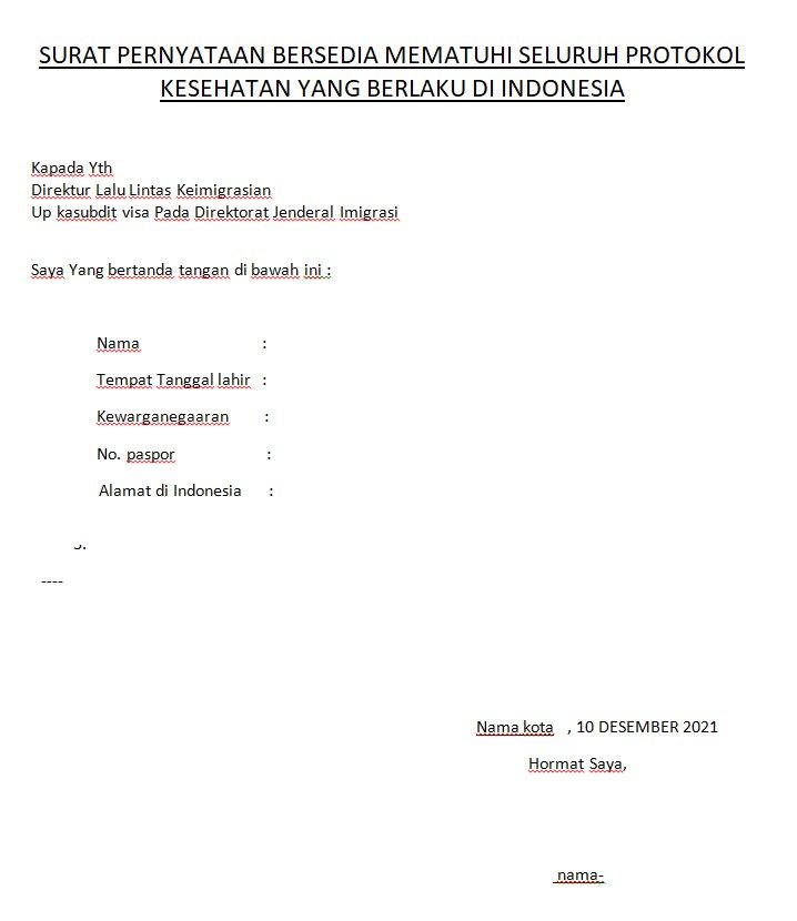 SURAT PERNYATAAN BERSEDIA MEMATUHI SELURUH PROTOKOL KESEHATAN YANG BERLAKU DI INDONESIA