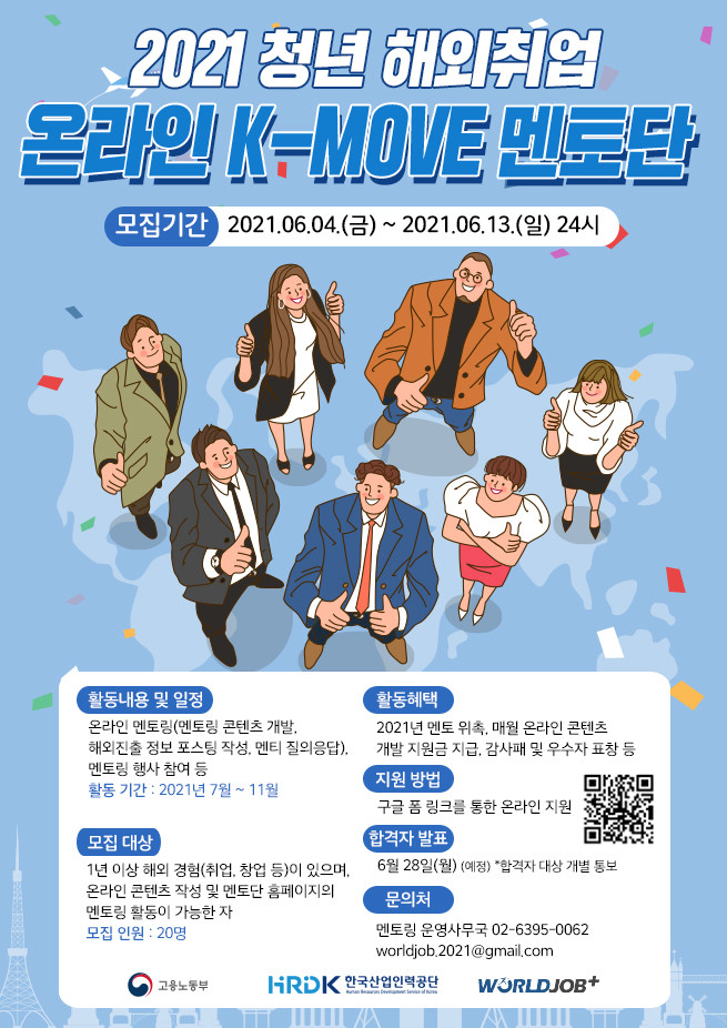 2021 청년 해외취업 온라인 K-MOVE 멘토단을 모집합니다.