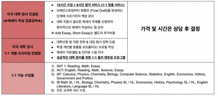 2021년 미국 10개 대학 메인 Essay 1:1 개인 수업(…