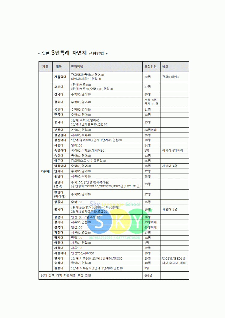일반 3년특례 자연계 전형방법 안내