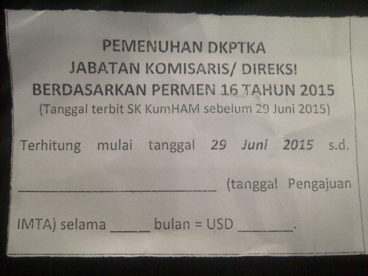 앞서 이미 노동부 장관령 개정에 따라 정관상에 등록된 외국인 이사, 감사에 대하여 모두 DPKK 납부
