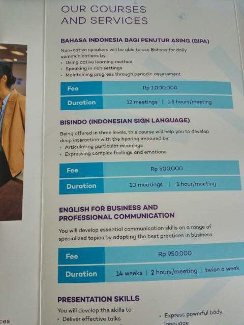 12 meetings (각 1.5 hours / 총 18시간) : 1,000,000 IDR