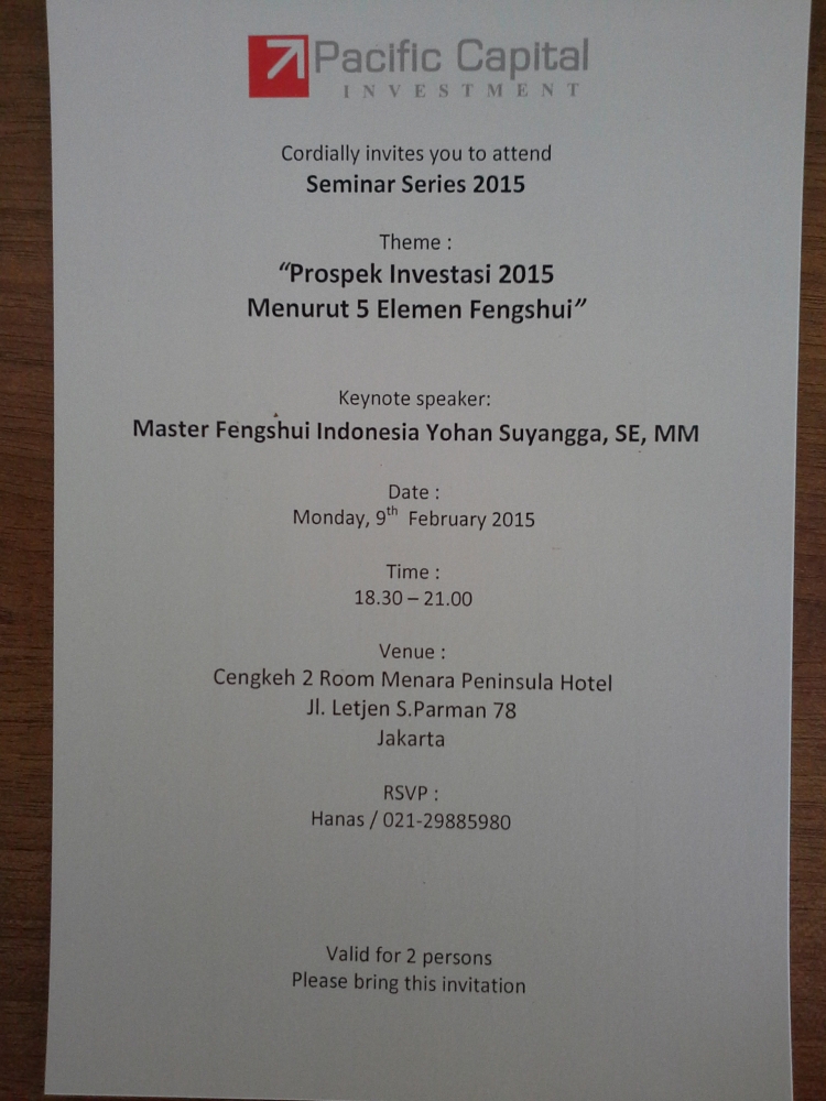 장소: Cengkeh 2 Room Hotel Menara Peninsula Jl.Letjen S.Parman 78 Jakarta