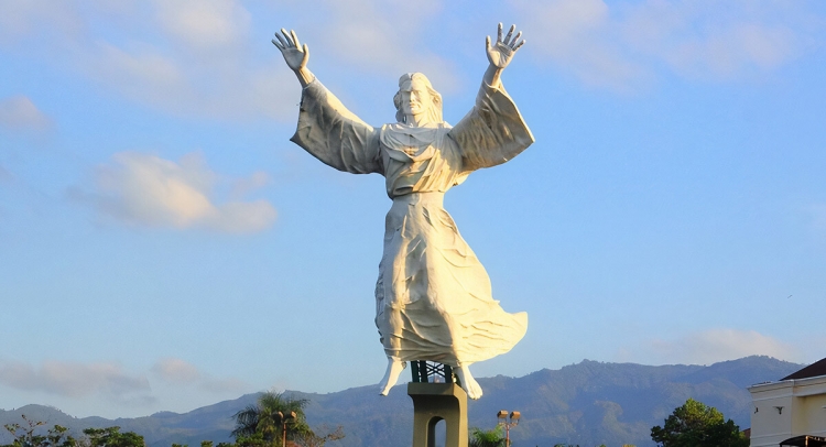 예수 축복상(Patung Yesus Memberkati) 예수 축복상(Patung Yesus Memberkati) 혹은 크리스토 레덴토(Cristo Redento)로도 알려진 이곳은 마나도 시를 대표하는 랜드마크입니다. 약 30미터의 높이에 두 손을 활짝 벌리고 마나도 시를 향해 서 있으며, 약 35도의 기울기로 하늘을 나는 듯한 평화를 전달하는 모습 인상적입니다. 이 자세는 마나도 시민들을 축복하고 보호한다는 의미를 담고 있습니다. 이 조각상은 아시아에서 2번째로 높고, 세계에서 3 번째로 높은 예수상으로 알려져 있습니다. 주변에는 천사를 형상화한 작은 조각상들이 설치되어 있어 신성하고 예술적인 분위기를 더해 줍니다. 마나도 도심에서 차로 약 15분 거리에 위치해 있으며, 이곳에서는 산과 도시가 어우러진 평화로운 풍경을 느낄 수 있습니다.